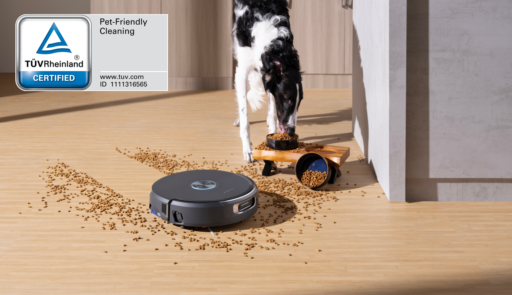 Modalità Pet Care: Flow 2 rileva le zone dedicate agli animali e regola immediatamente potenza e rumorosità per una pulizia profonda che non li disturba.