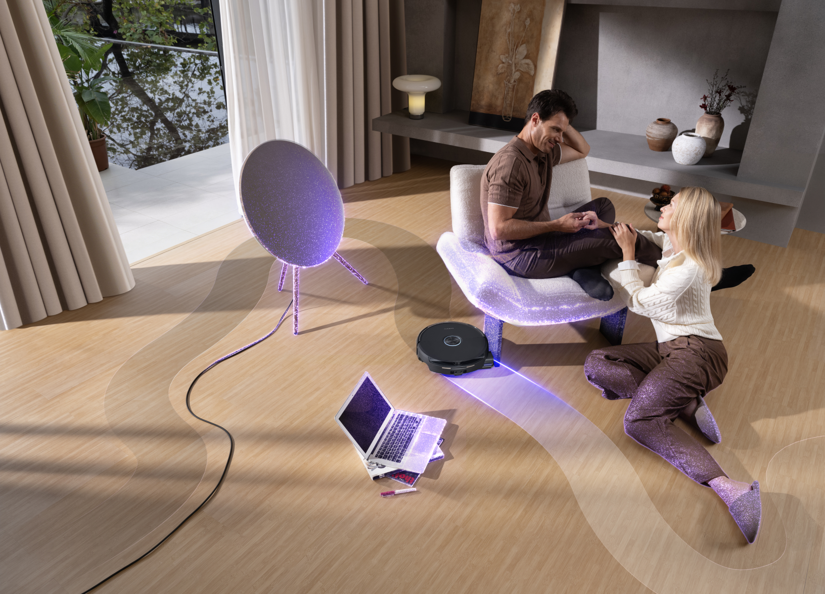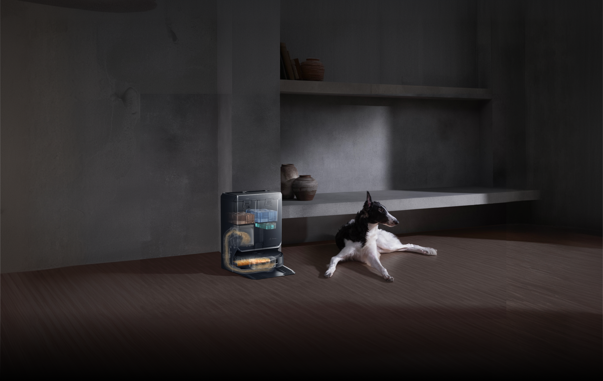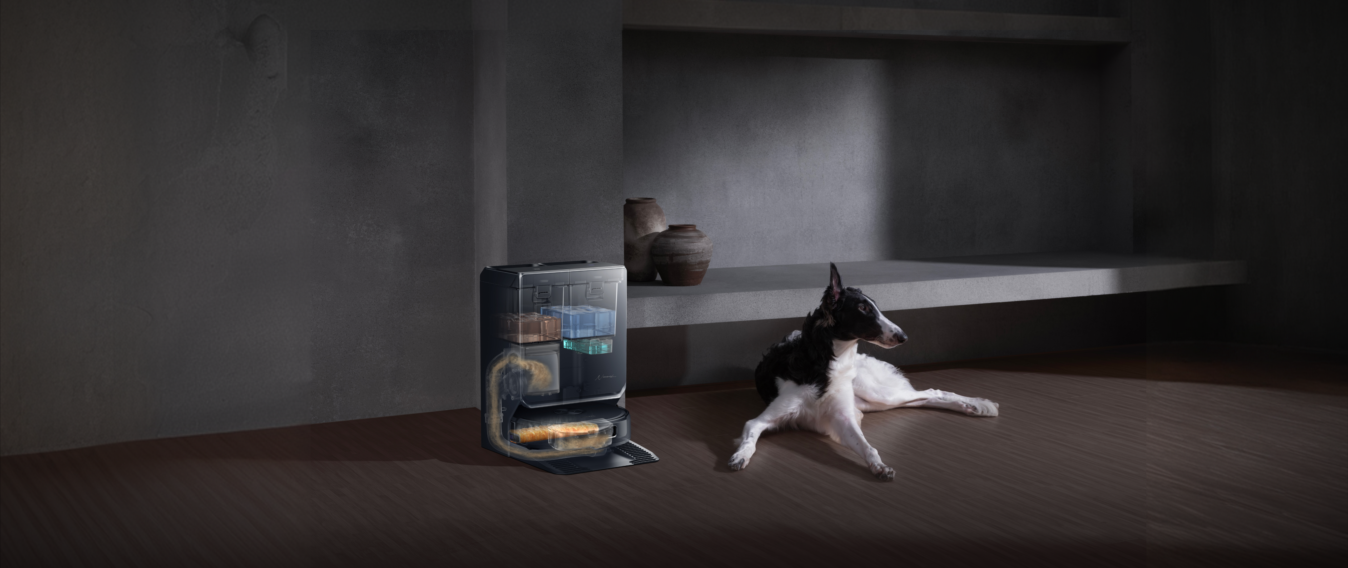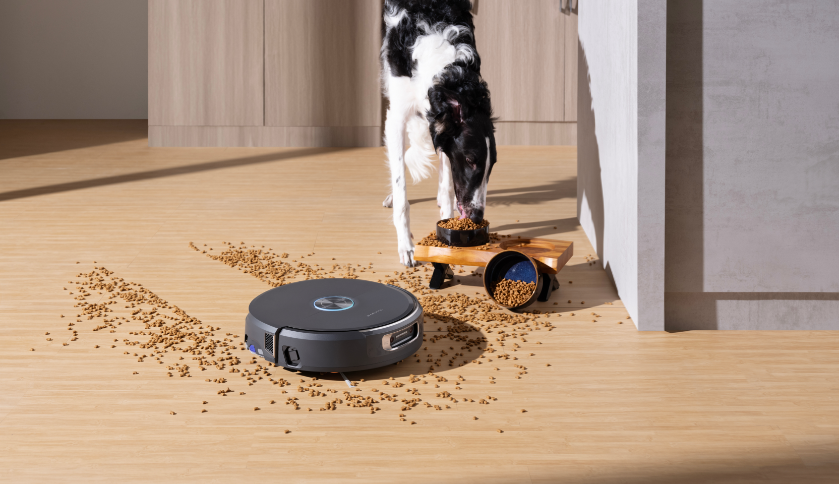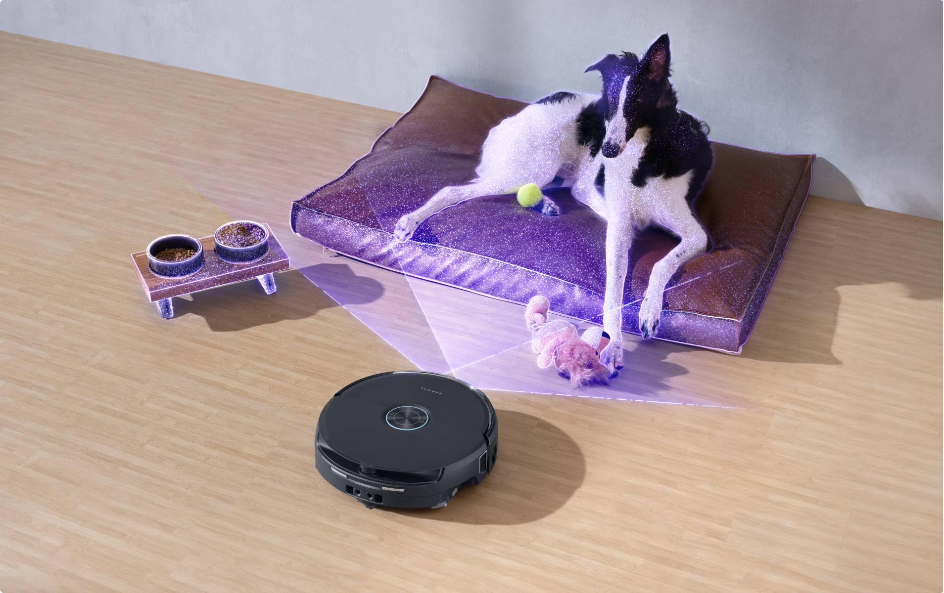 Modalità Pet Care: Flow 2 rileva le zone dedicate agli animali e regola immediatamente potenza e rumorosità per una pulizia profonda che non li disturba.