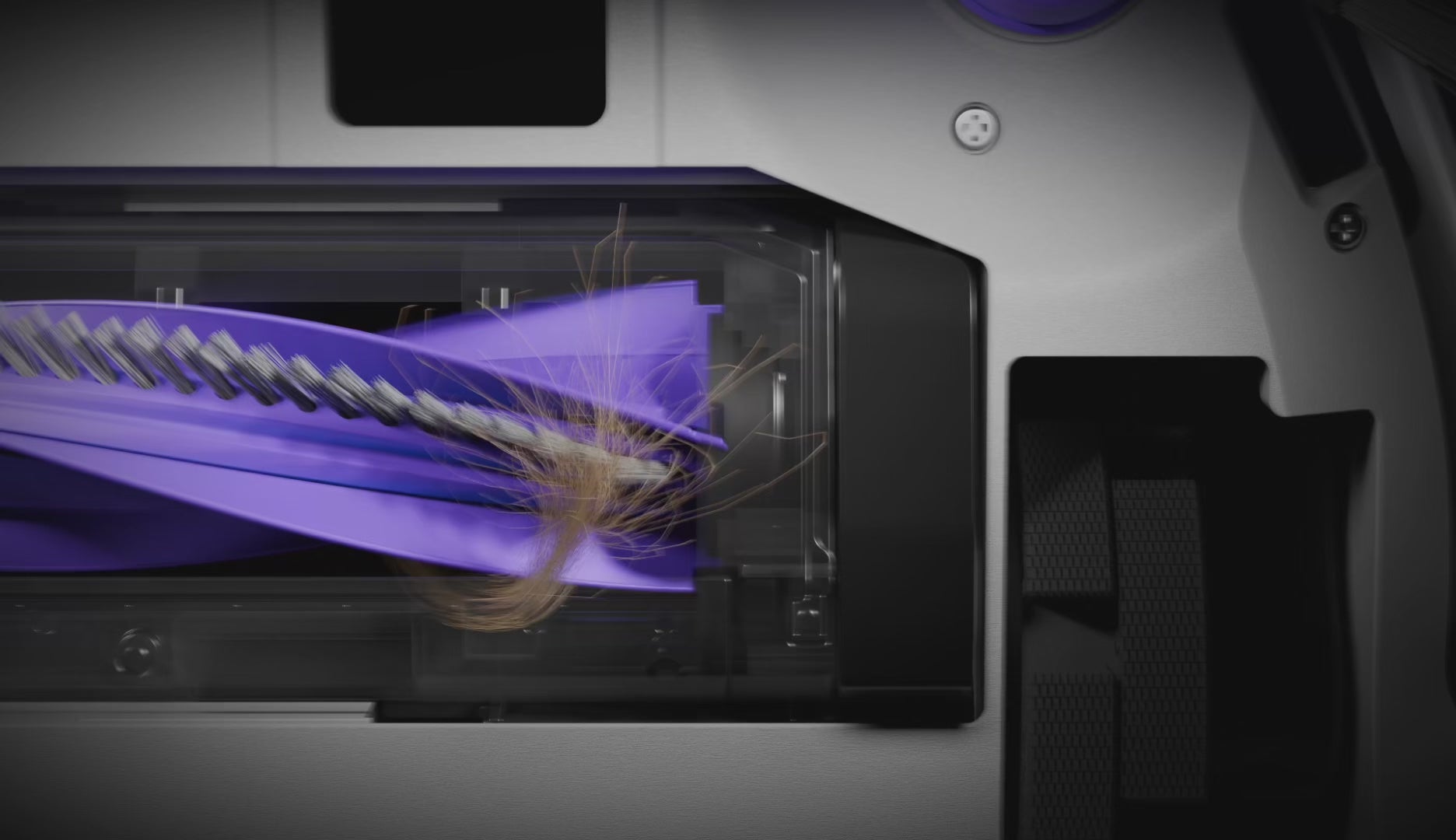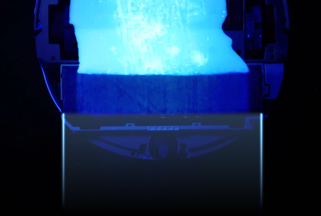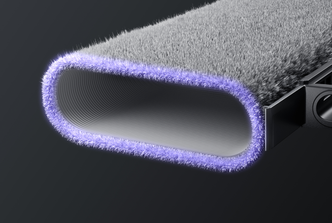 La copertura del vano aspirazione si abbassa creando una tenuta ermetica, aumentando istantaneamente la potenza di aspirazione di 4,2×* e il flusso d’aria per estrarre la polvere in profondità dalle fibre del pavimento.