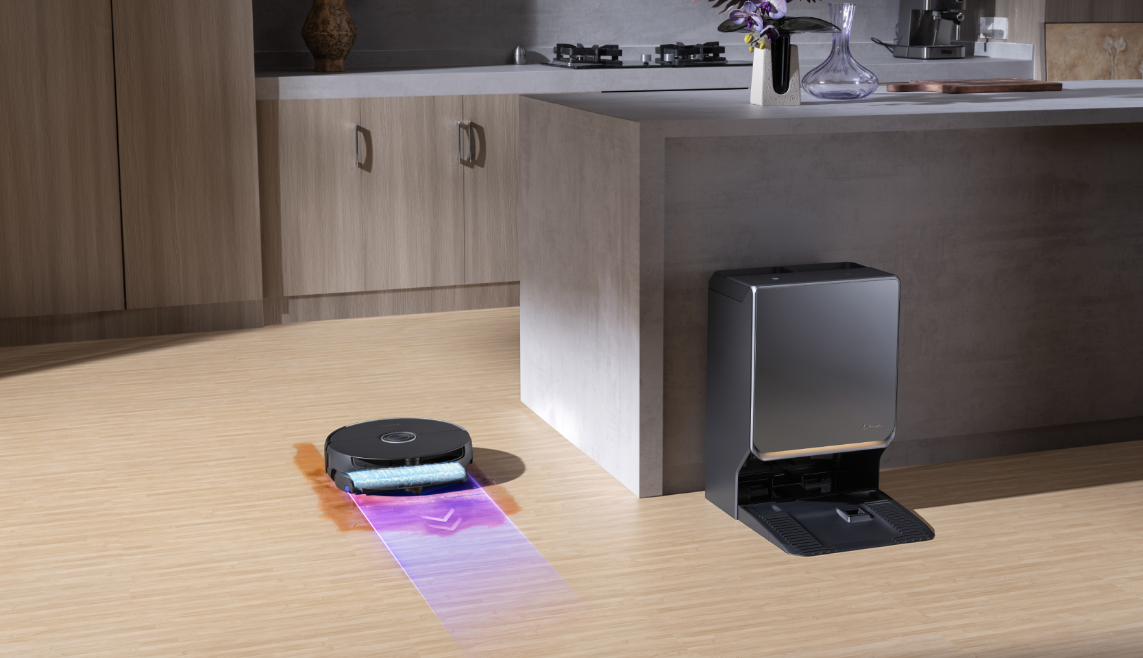 La stazione gestisce automaticamente il lavaggio del mocio e lo svuotamento della polvere, mantenendo il robot sempre pronto mentre tu resti a mani libere. La stazione gestisce automaticamente il lavaggio del mocio e lo svuotamento della polvere, mantenendo il robot sempre pronto mentre tu resti a mani libere.