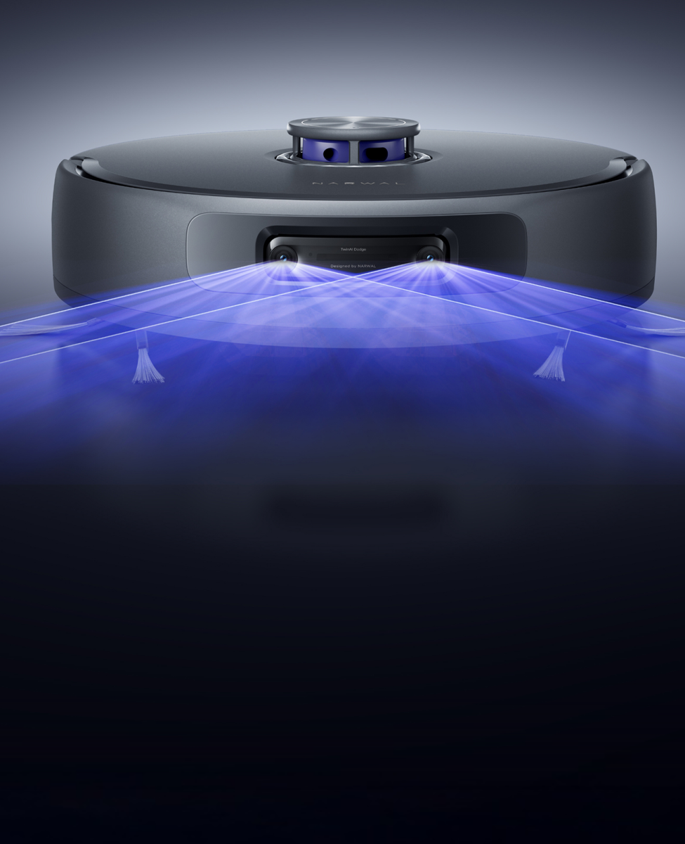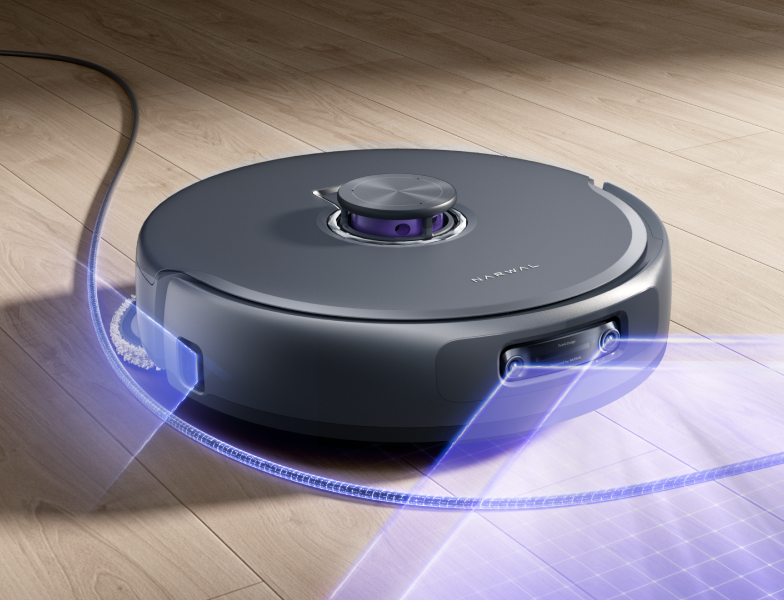 Le robot aspirateur Narwal est équipé de capteurs de falaise qui utilisent l'infrarouge pour détecter les chutes soudaines dans les escaliers et s'arrêtent automatiquement pour éviter les chutes.